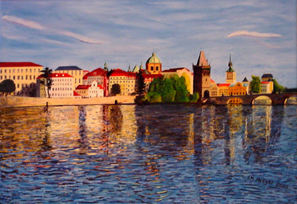 Lone Skiff on the Vltava 1994 Oil on Canvas 8"x12" Patrons/Patronesses: Private Collection Charlottesville, VA